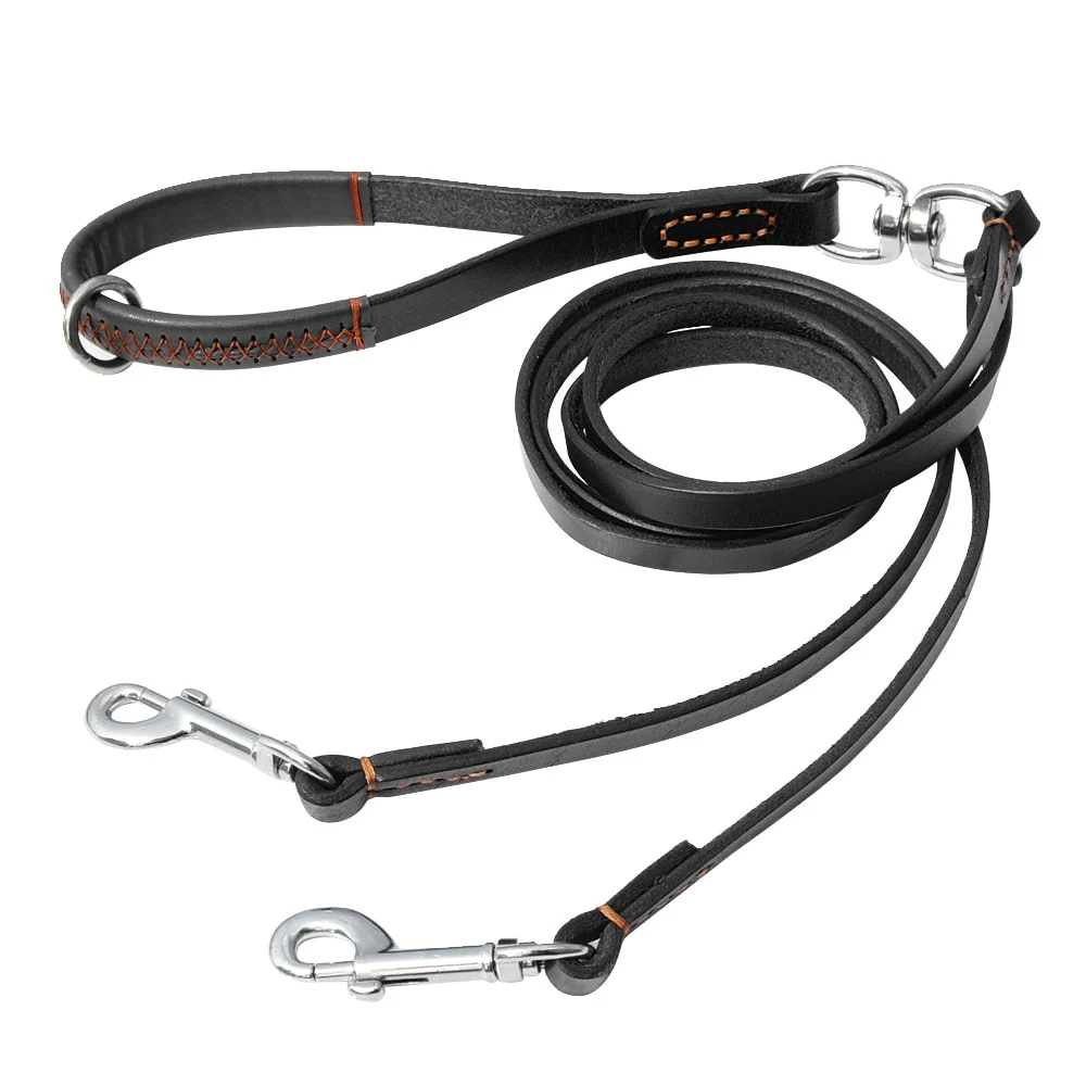 De leiband is gemaakt van soepel, sterk en zacht leer met een roestvrije 360° rotatiekoppeling waardoor uw honden zich goed kunnen bewegen.