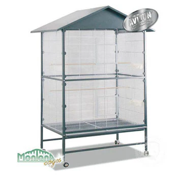 Montana Casa II / 120 antiek / lichtgrijs. Een vierkante voliere voor de kleinere vogels, zeer ruim van opzet met een dubbele kleurcombinatie zwart/zilver met lichtgrijs. Door een speciale constructie is de kooi ook bruikbaar zonder het puntige dak, 144 cm binnenruimte ,13mm spijlafstand en 2 mm spijldikte met 2 zitstokken en 4 plastic voerbakjes , gewicht 64,5 kgca. 119x81x205 cm.