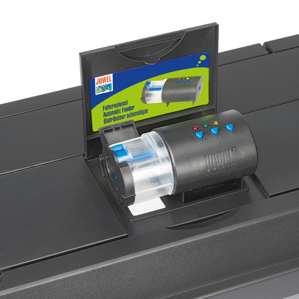 De Juwel Easy Feed is de JUWEL-voederautomaat die gemakkelijk gebruikt kan worden in elk aquarium. De installatie in JUWEL-aquaria is dankzij de passende montageplaat bijzonder gemakkelijk en comfortabel. De automaat kan geprogrammeerd worden voor twee voedingscycli per dag en maakt het mogelijk uw vissen met een interval van 6 uur te voederen. (Inclusief: 2x AA batterij)