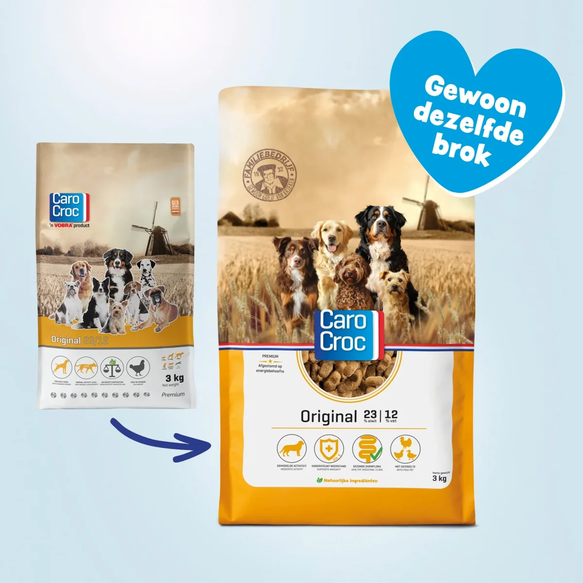 CaroCroc Original is een volledig voer voor volwassen honden in goede gezondheid. De brokken hebben een optimaal eiwit- en vetgehalte en geven jouw viervoeter precies wat hij nodig heeft.