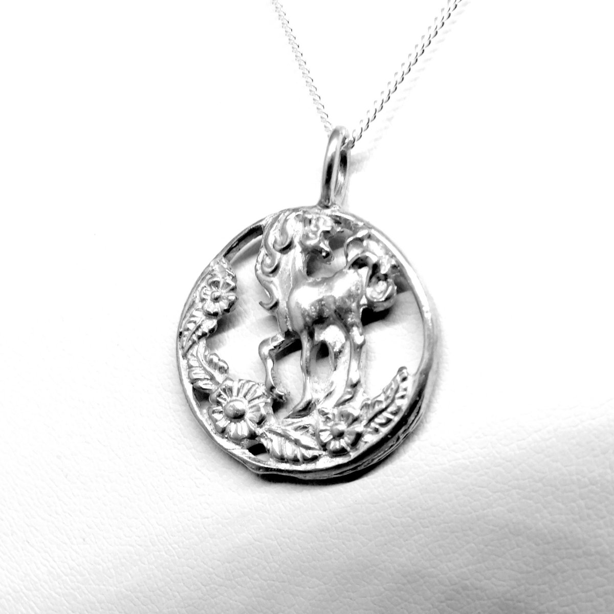 Elegante zilveren hanger van een paard met bloemen – in een cirkel – met collier