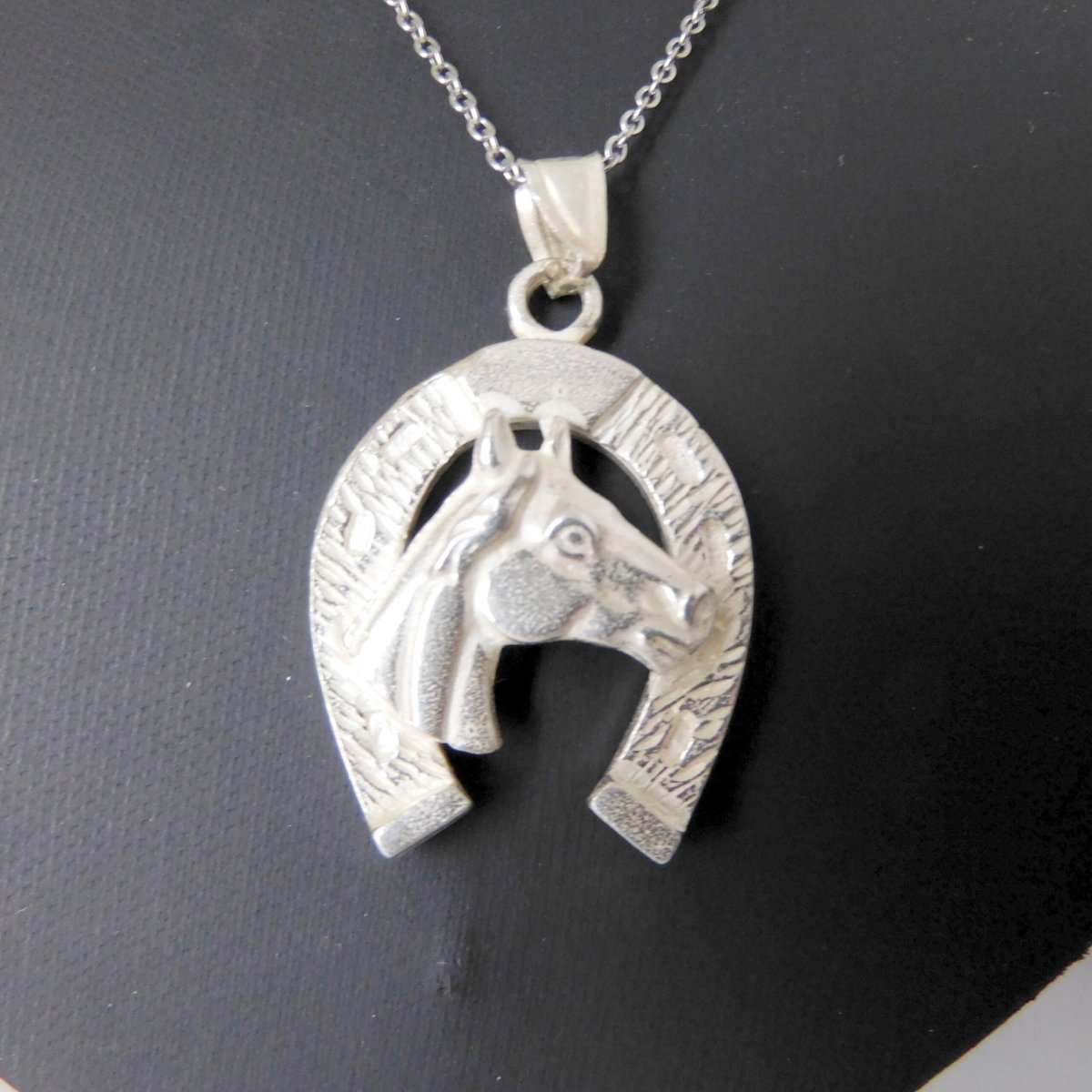 Grote Massieve Hanger van een Hoefijzer met Paard – 925 Zilver – Inclusief Collier van 45 cm