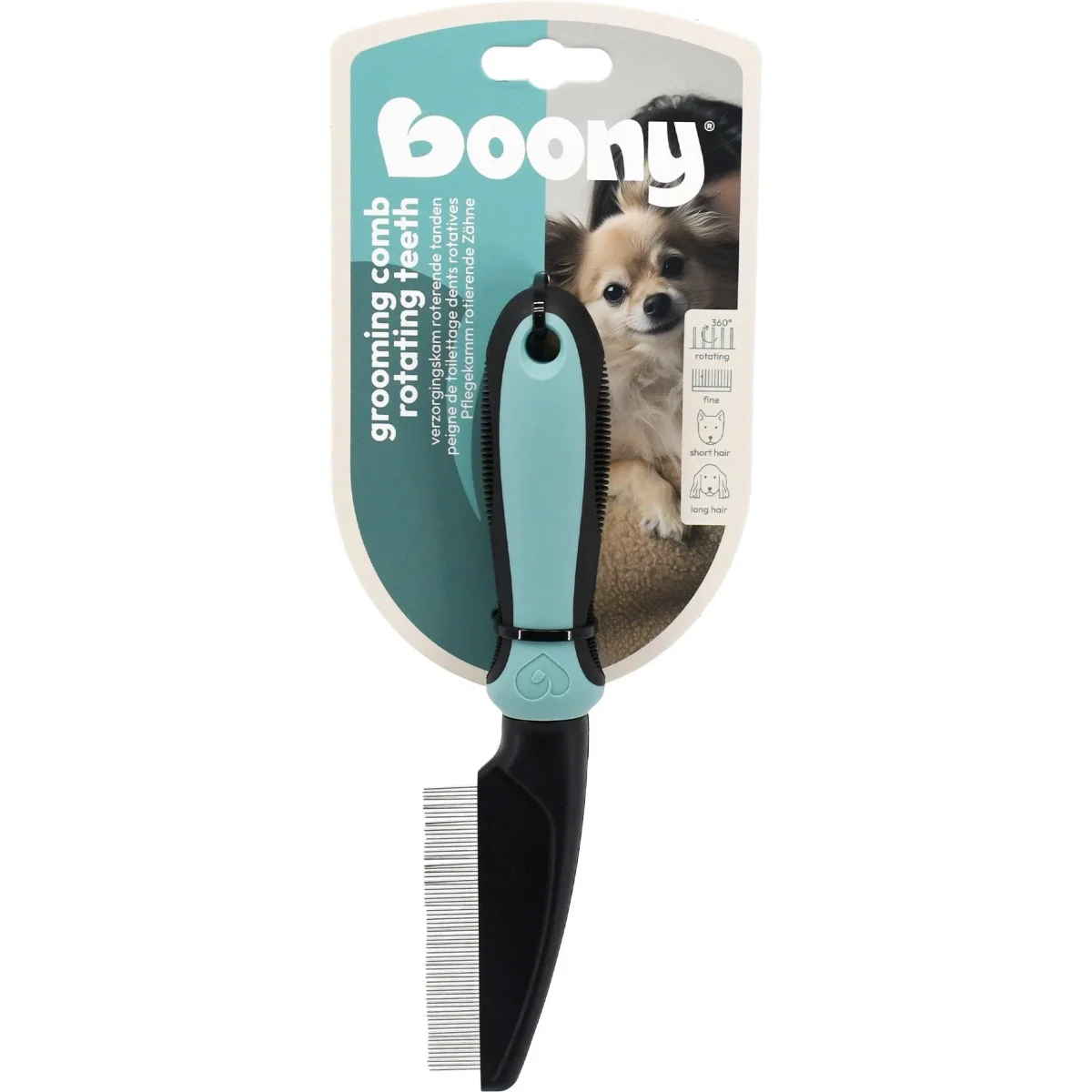 Deze verzorgingskam met fijne tandwijdte is perfect voor het verzorgen van honden met een lange, dunne vacht. De kam maakt de vacht los en verwijdert effectief losse haren, vuil en beginnende klitten. Door de roterende tanden glijdt de kam soepel door de vacht en wordt het kammen een stuk comfortabeler.