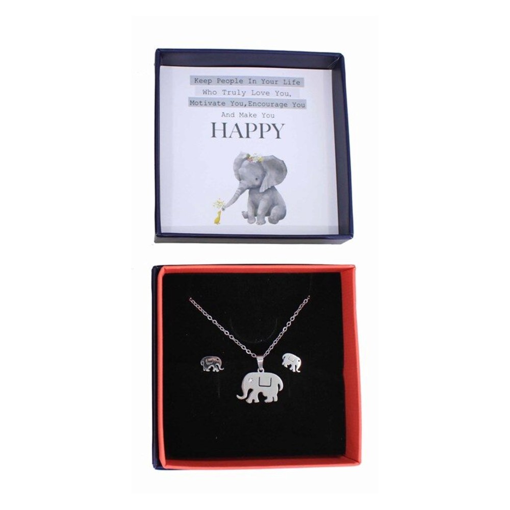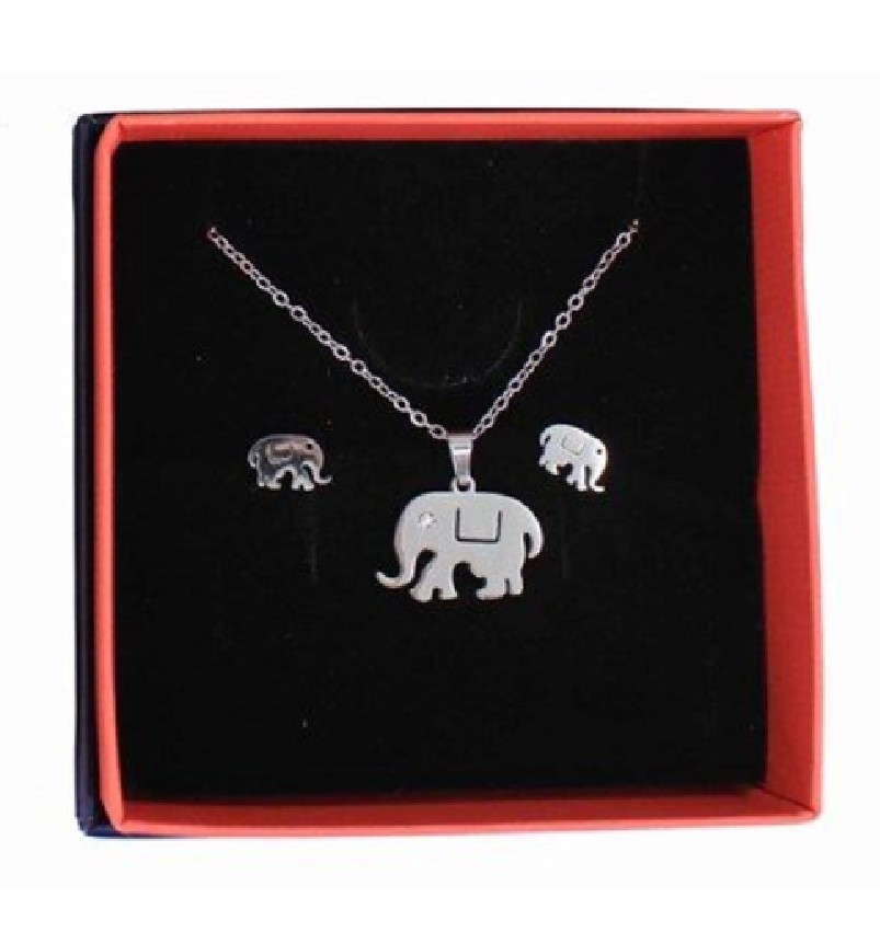 Schattig setje – olifantjes – collier met hanger en oorbellen – rvs