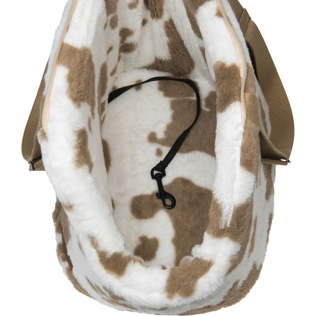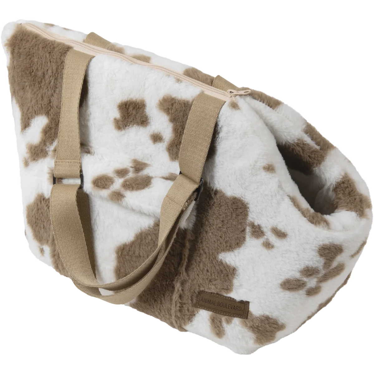 Neem jouw kleine hond of kat overal stijlvol mee naartoe met de Draagtas Hollandse bonte boeren koe print in warm beige en bruin. Een tas met een knipoog naar het oer-Hollandse platteland – waar de koeien in de wei staan en gezelligheid centraal staat. 🇳🇱🐄