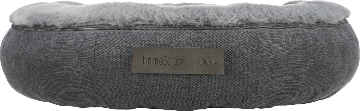 Het Trixie Honddenmand Liano Rond Grijs is een comfortabele hondenmand met pluche, rand, geïntegreerd kussen en slipvaste onderkant.